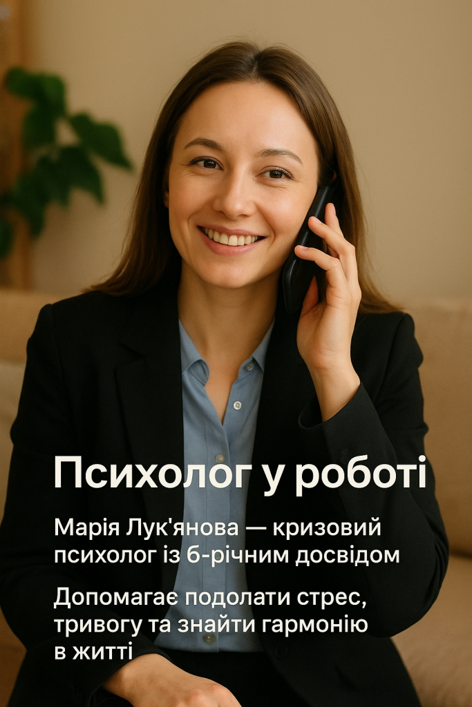 Марія Лук’янова — професійний кризовий психолог із 6-річним досвідом. Допомагає швидко подолати стрес, тривогу та емоційне виснаження. Запишіться на консультацію та відчуйте полегшення вже після першої зустрічі!